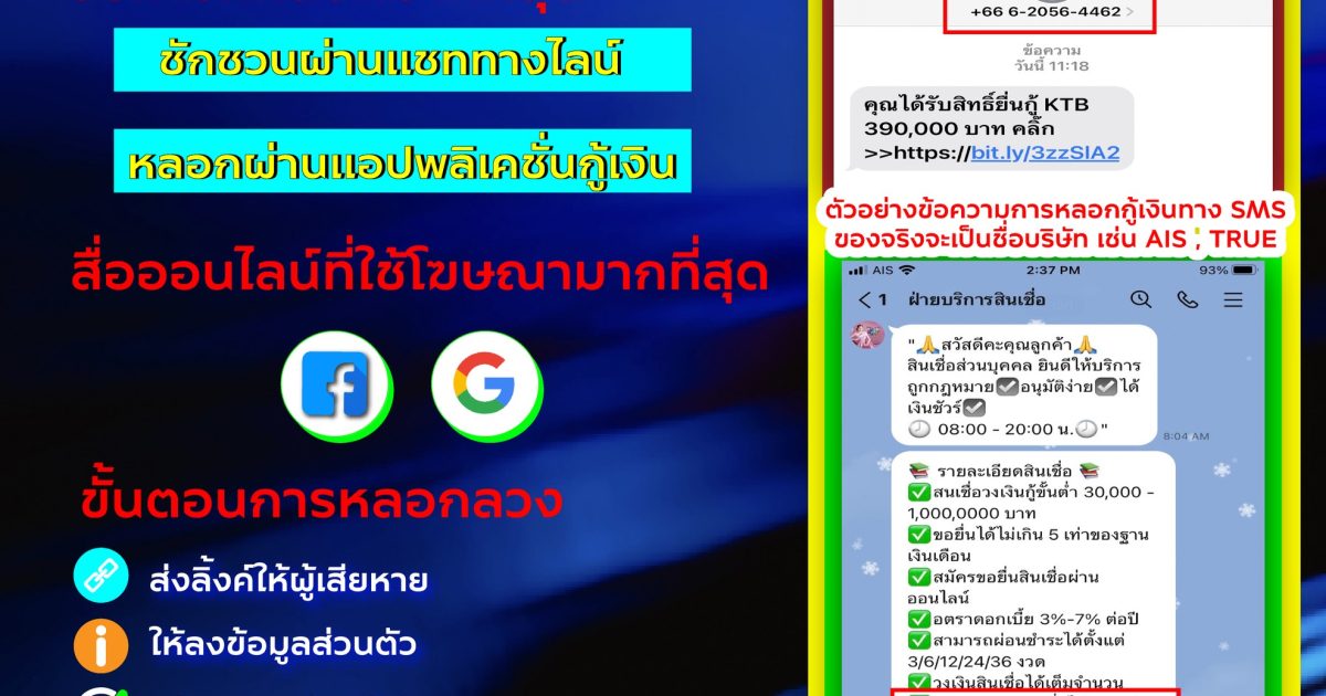 รูปแบบการชักชวนแอปพลิเคชั่น Line/App กู้เงิน![]()