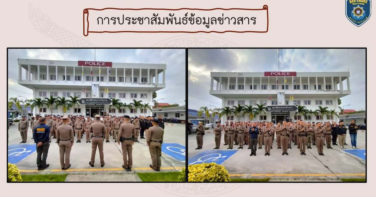 พ.ต.อ.ทนงศักดิ์ คำมาตย์ ผกก.สภ.บ้านฉาง พร้อมข้าราชการตำรวจ สภ.บ้านฉาง เคารพธงชาติ ตรวจเครื่องแต่งกาย ทรงผม และเน้นย้ำการปฏิบัติหน้าที่ ความสามัคคีฯ มีวินัย ปฏิบัติตนตามคำสั่งผู้บังคับบัญชา บริเวณหน้า สภ.บ้านฉาง